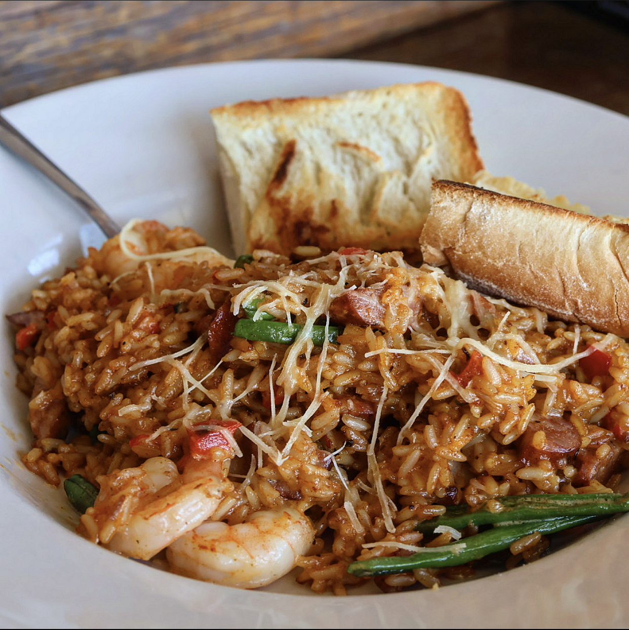 Deep South Risotto featuring shrimp and andouille in a creamy, zesty rice with green beans. Packed in a 5″ x 7″ pan that bakes straight from frozen for an easy, flavor-filled meal.
