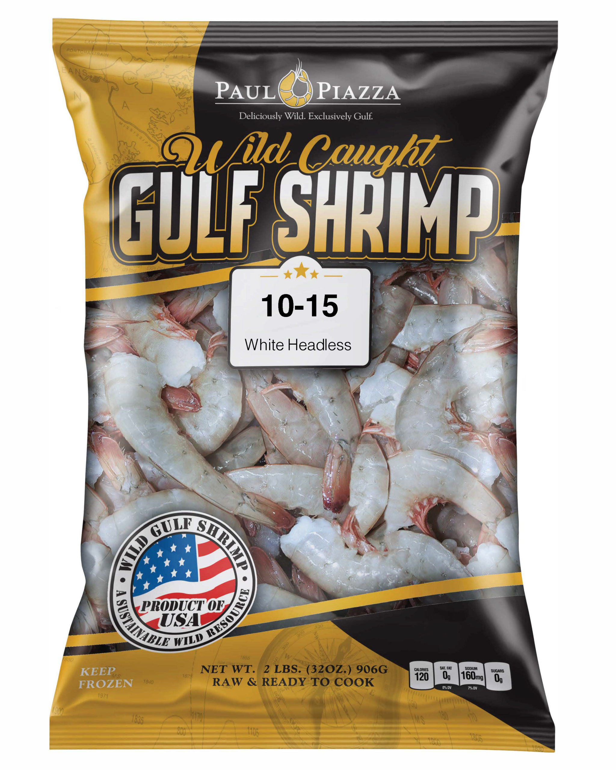 2 lb. 10/15 ct. Shell-on Gulf Shrimp, wild-caught in the USA. Frozen for freshness. Packaging may vary. Perfect for grilling, boiling, and seafood dishes.
